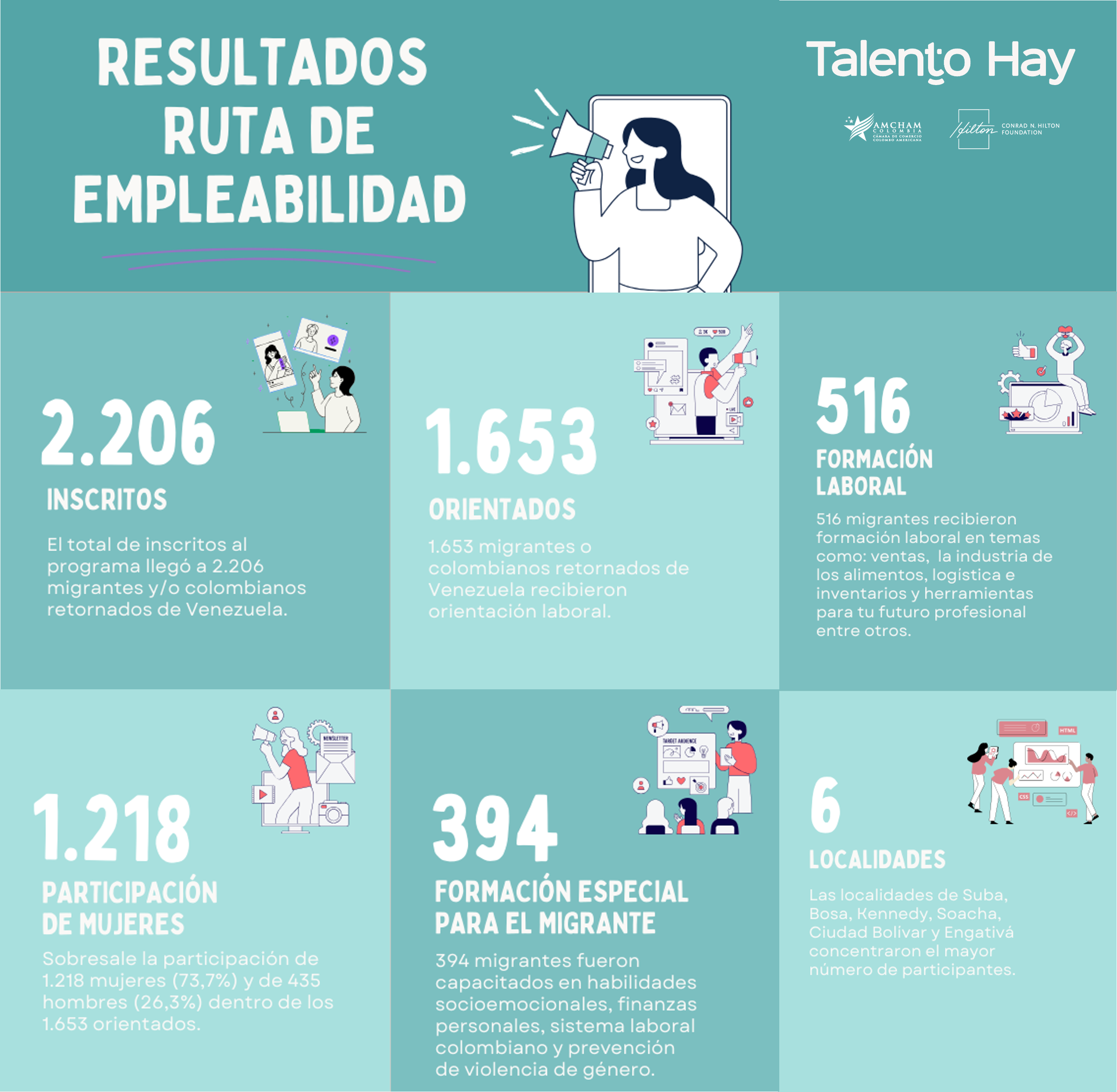 De manera simultánea, abrimos la ruta para emprendedores, en la que como primer paso evaluaremos sus emprendimientos para trazar con ellos el plan de trabajo de los procesos de formación y fortalecimiento empresarial que requieran. Finalmente, la Ruta de Empleabilidad se activó a partir de febrero de 2023 para los migrantes que estén en búsqueda de un empleo formal, con quienes iniciamos procesos de formación inmediatamente.